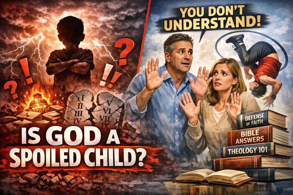 God is like a spoiled child, while Christians are like god’s helicopter parents