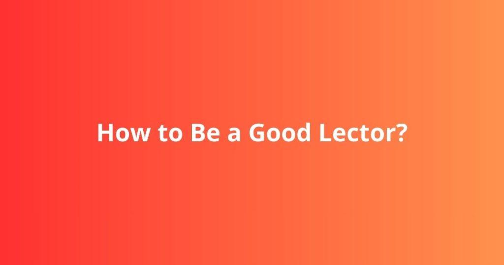 - Good lectors use clear pronunciation, proper breathing, varied pacing, and appropriate eye contact to serve the assembly effectively.