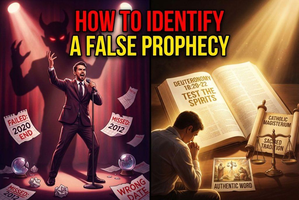 - False prophecy can be identified through careful examination of its consistency with established Catholic doctrine and Sacred Scripture.