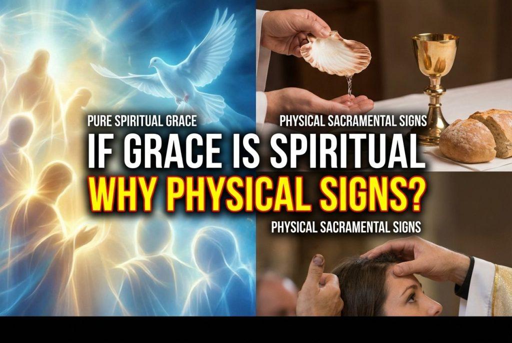 The question of why grace uses physical signs when grace itself is spiritual finds its answer in the nature of the human person, the reality of the Incarnation, and God’s pedagogy of salvation. Physical signs are not arbitrary additions to spiritual life but necessary accommodations to human nature as body and soul united. We are not pure spirits who can relate to God through purely mental or emotional means. We are embodied creatures who perceive, communicate, and understand through our senses and through physical interaction with the world around us. God respects the way he created us when he chooses to work through visible, tangible signs. The Incarnation provides the theological foundation for this sacramental principle. When the eternal Word became flesh in Jesus Christ, God united divinity to materiality in the most intimate way possible. Christ’s physical body became the instrument of salvation, his human actions conveyed divine grace, and his material suffering accomplished spiritual redemption. The sacraments continue this incarnational logic by using physical elements as instruments through which Christ communicates his grace to believers. They are not human inventions but divine gifts that reflect God’s wisdom in dealing with his creatures.