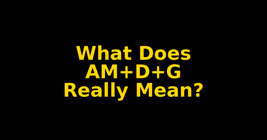 - AM+D+G stands for Ad Maiorem Dei Gloriam, a Latin phrase that translates to “For the Greater Glory of God.”