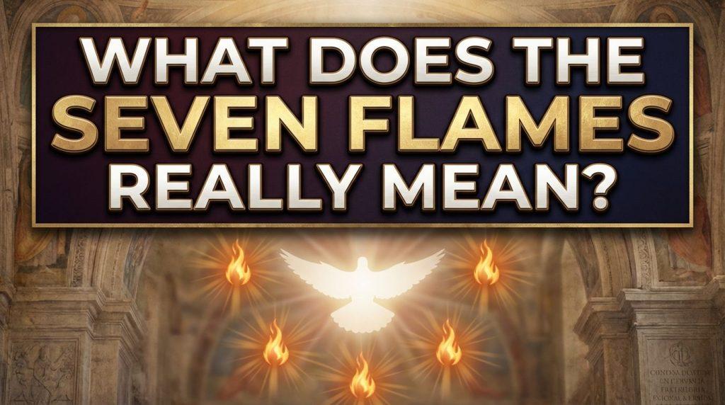 The seven flames represent the seven gifts of the Holy Spirit given to every Christian at Confirmation. These gifts have their foundation in Isaiah’s prophecy about the Messiah and were manifested at Pentecost when fire descended on the apostles. Wisdom enables supernatural judgment from God’s perspective. Understanding penetrates divine mysteries. Counsel discerns God’s will for particular situations. Fortitude provides courage and endurance for trials. Knowledge shows creation’s proper relationship to God. Piety establishes filial relationship with the Father. Fear of the Lord creates reverent awe before divine majesty. These gifts perfect different human faculties, enabling supernatural operation beyond natural capacity. They are given through Confirmation’s sacramental action but must be cultivated through prayer, sacraments, and cooperation with grace. Pride, attachment to sin, neglect of spiritual practices, and worldliness obstruct their development. Those who faithfully cultivate the gifts display recognizable holiness that transforms every aspect of life. The saints demonstrate the seven gifts’ full flowering and inspire us to pursue similar growth. Every baptized and confirmed Catholic possesses these flames of the Spirit potentially and bears responsibility to tend them carefully. Through the gifts’ development, believers become effective witnesses to Christ and advance steadily toward the holiness God calls all Christians to achieve.